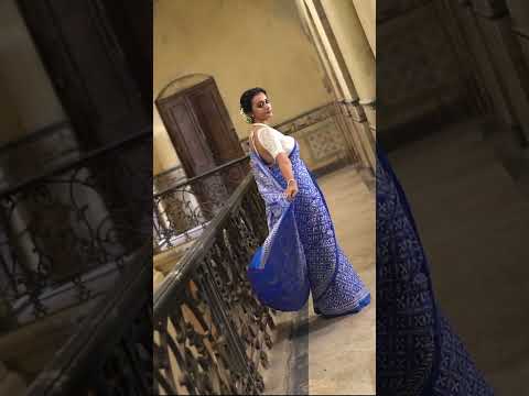 Madhulika stood gracefully in the soft glow of the studio lights, draped in a stunning blue kantha saree made of luxurious mulberry silk. The saree, adorned with intricate kantha embroidery crafted by the skilled women of the rural village of Shantiniketan, told tales of tradition and artistry. Each stitch on the fabric reflected the patience and creativity of the artisans who poured their heart and soul into the design.