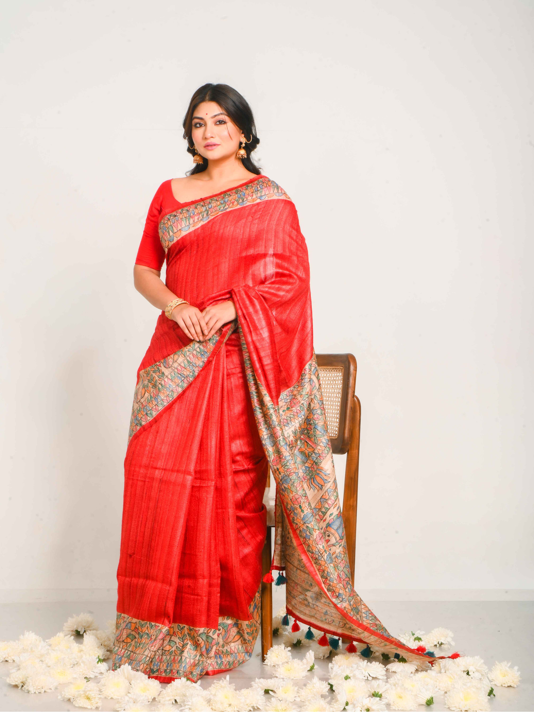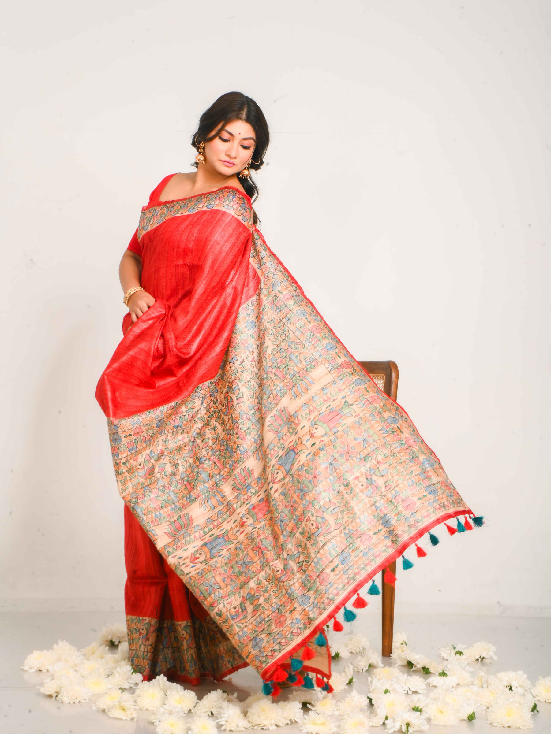 Madhubani Sarees: Hand Paint Tussar Saree