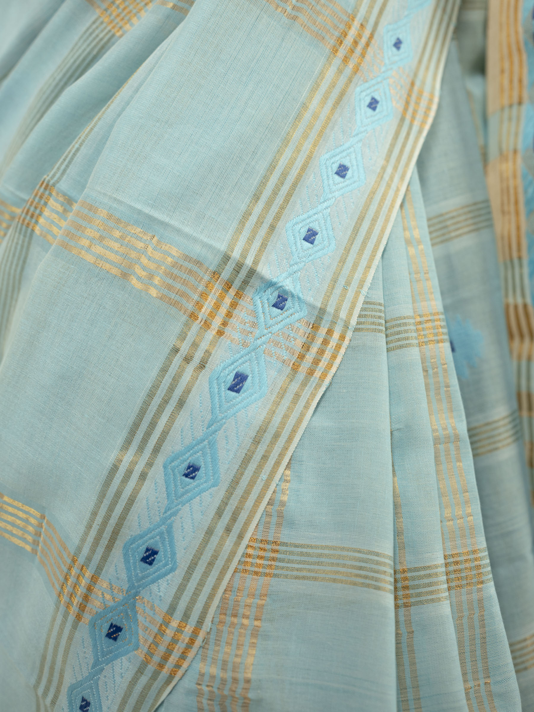 Handwoven Jamdani - Sky Blue color Cotton saree with Light Blue jamdani motif