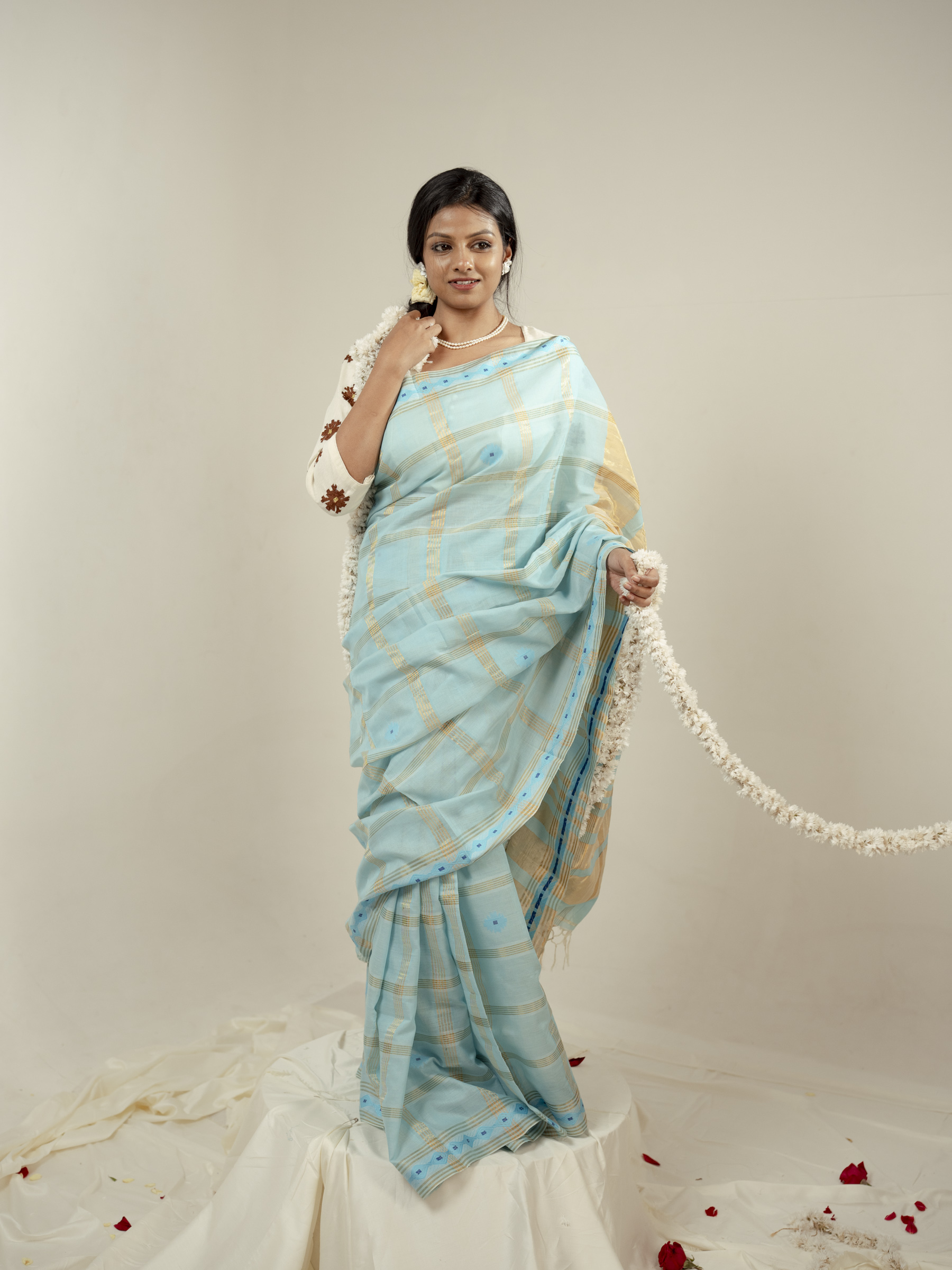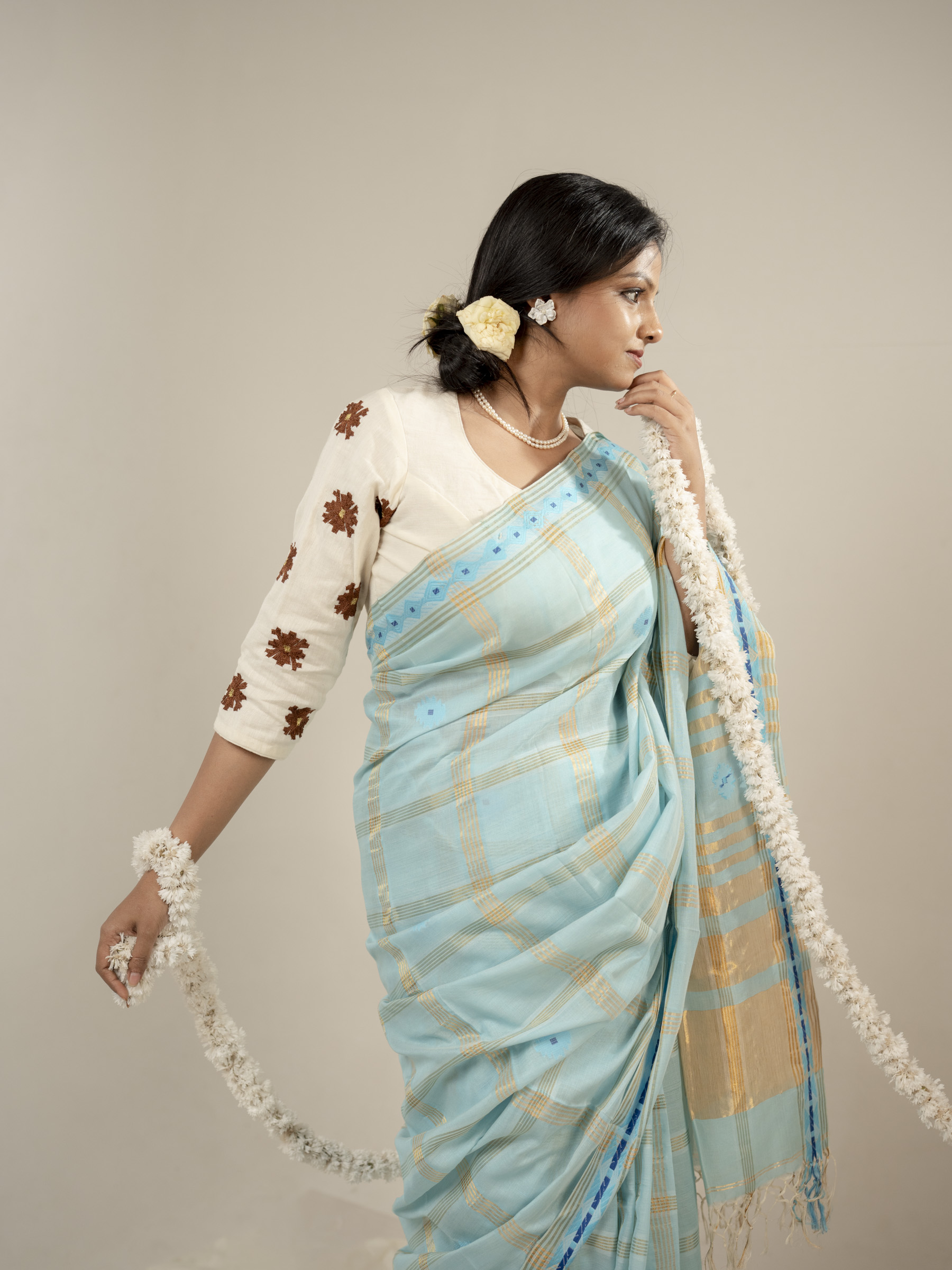 Lightweight and airy, the Asmani saree is perfect for summer wear—bringing together softness, tradition, and effortless sophistication.