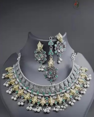 Necklaces, chains, and statement neckpieces are all available in oxidised style. Oxidised chokers or collar necklaces have become especially popular. These look good with ethnic as well as indo-western wear. They are uniquely crafted with beautifully embedded designs. There are also necklaces of a longer length which typically come with large pendants in a statement design. An oxidised neckpiece is bold and beautiful and gives a strong, powerful look to the lady who wears it.