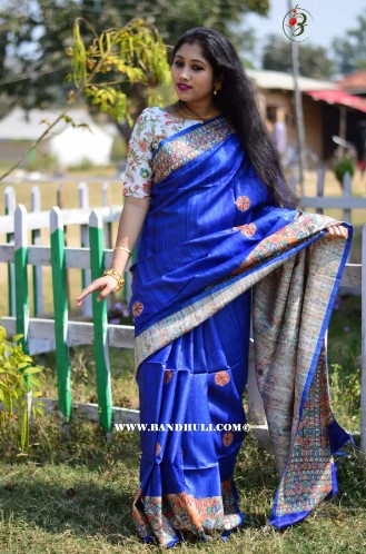 Tussar silk production is a major occupation among the Tribals in Jharkhand, Chattisgarh, Bihar, and West Bengal. A majority of Tussar silk sarees are hand-woven by tribal women with each saree taking about three days to be complete. They are produced by completely natural and eco-friendly methods. Tussar silk threads are unique because of their natural golden hue with a shimmery texture. The sarees are mostly produced in lighter shades of cream, beige, or brown. They are naturally dyed in darker colours to give it a richer and more glamorous look. The Tussar silk saree shops in Kolkata source most of their sarees from Bhagalpur, Bihar as the region produces a large portion of original Tussarsarees. Tussar silk is sometimes also referred to as Bhagalpuri silk.