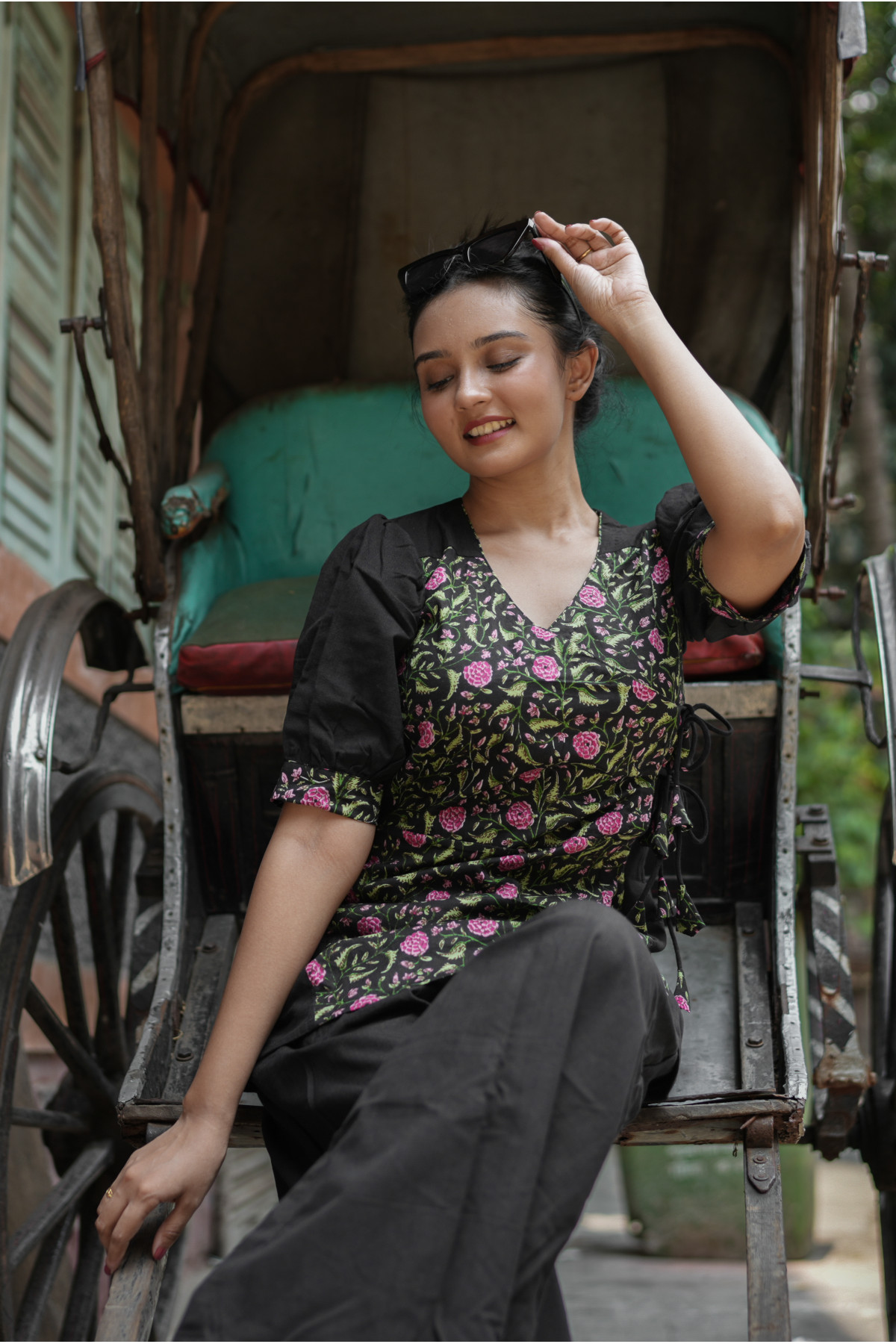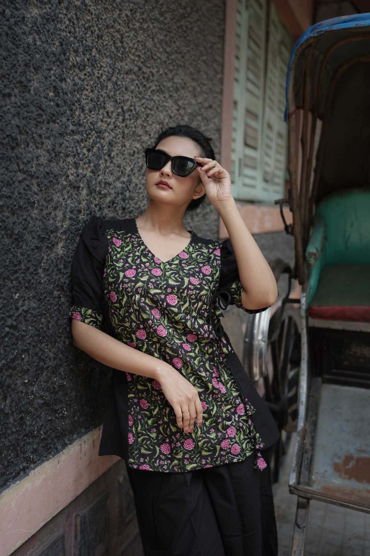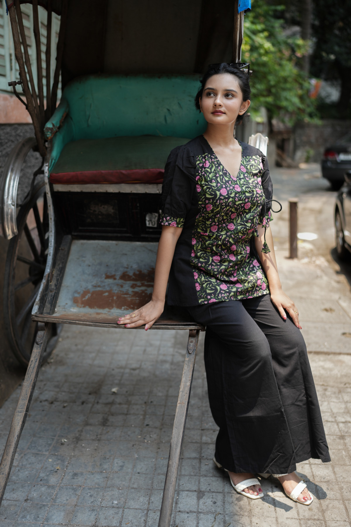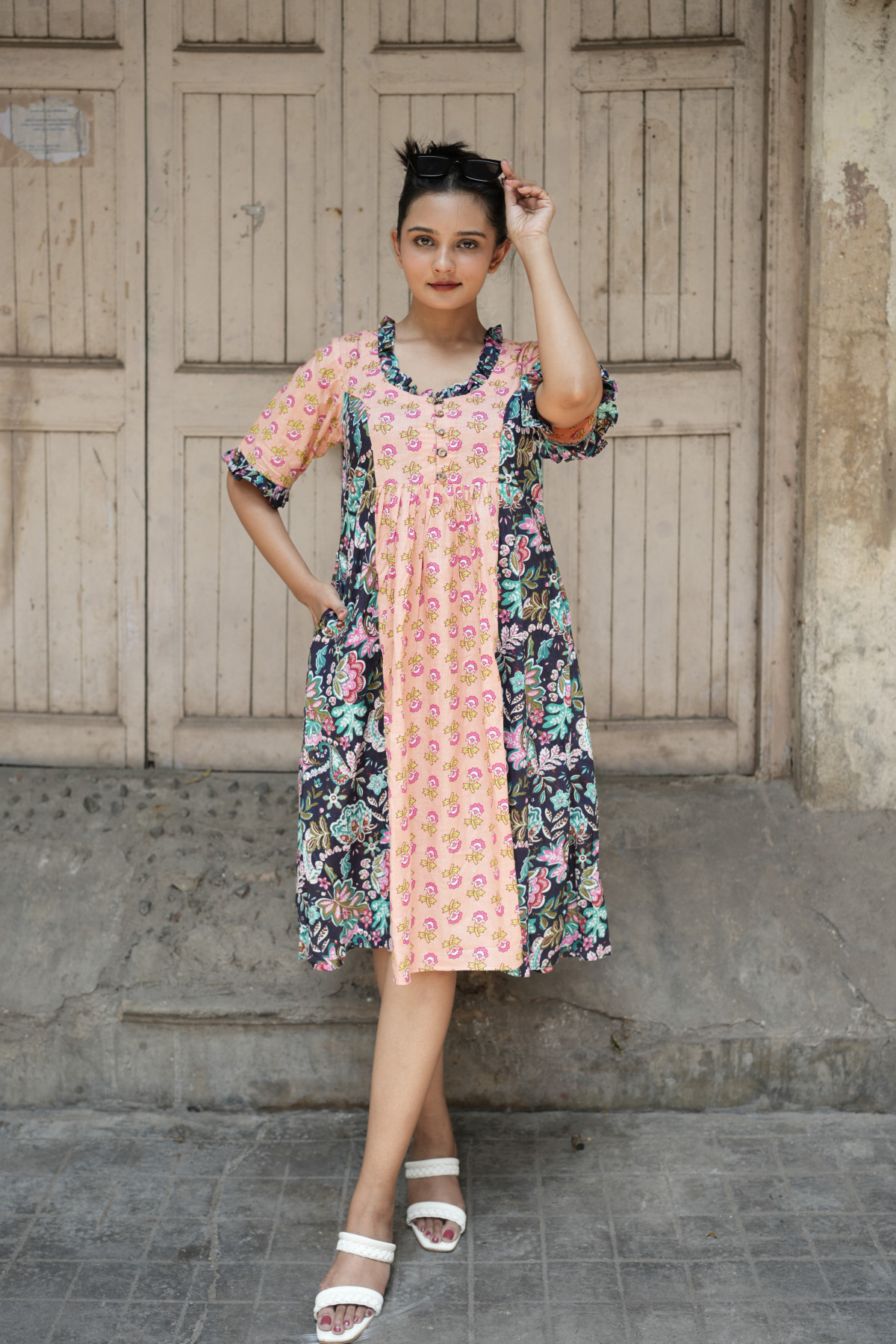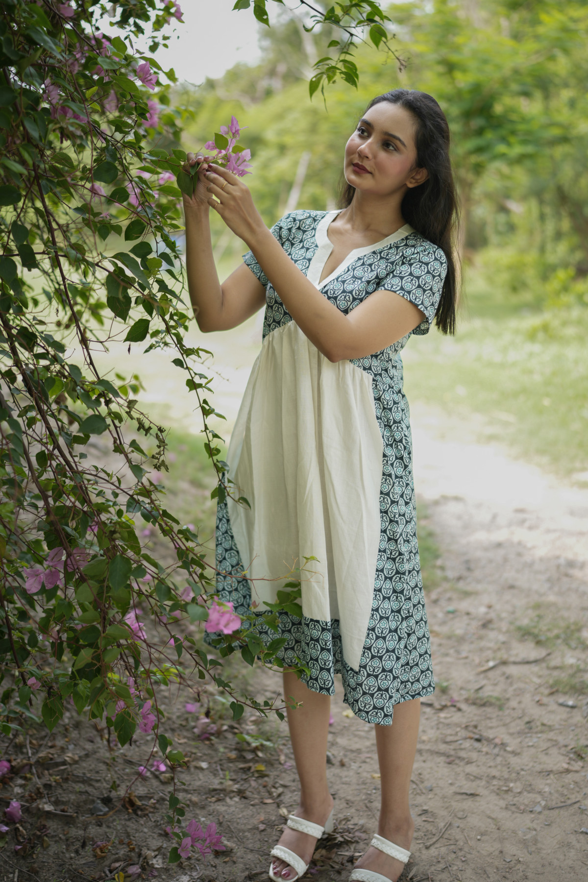 Rikhiya walked gracefully through the sunlit garden, her soft cotton dress from the Titli Collection flowing effortlessly with every step. The lightweight fabric felt like a cool breeze against her skin, perfect for the warm summer afternoon. With its elegant silhouette and subtle yet stylish design, the dress embodied effortless charm.