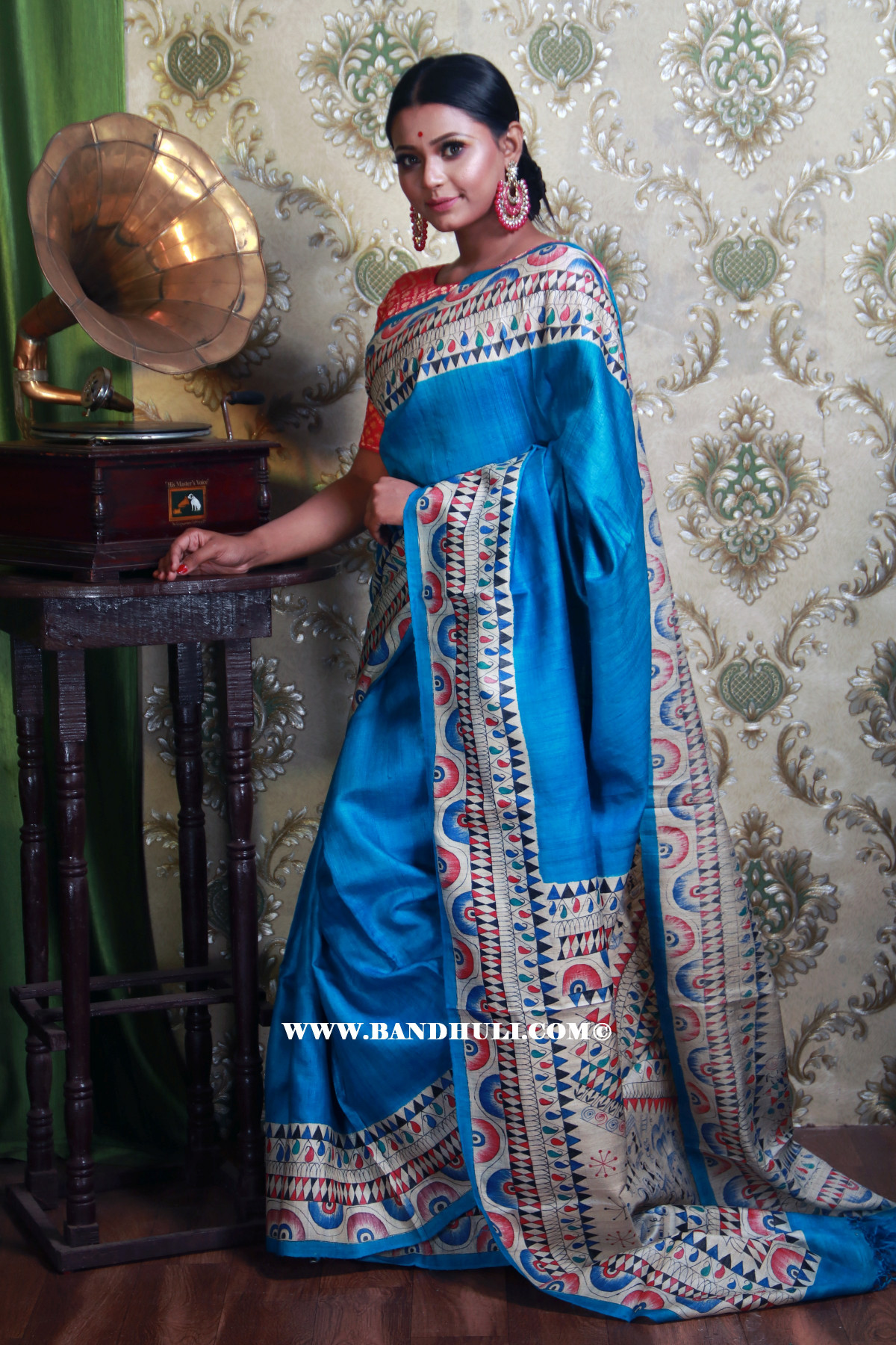 Pure Tussar Saree with Mithila Art painting on virgin tussar color. Body potion is having delicate small floral pattern Madhubani painting. Border & Pallu is having Madhubani painting in floral and bird design. ** Color - Virgin Tussar ** Occasion - Festive/Party ** Wash Care - Dry clean ** Transparency - Non See Through ** Design - Madhubani ** Material - Tussar** Saree Length - 5.5 Meters ** Blouse Piece - 1.0 Meters** Weight - 490 gms **